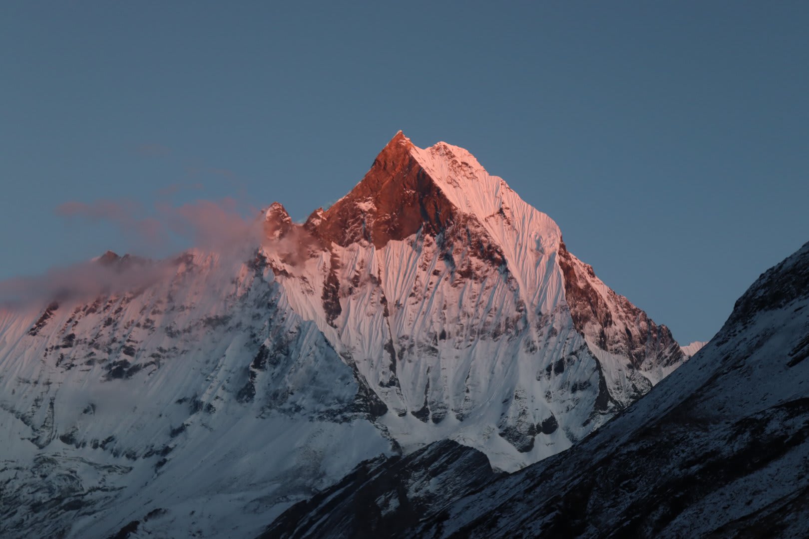 As you go further into the Annapurna Sanctuary, the path slowly rises following the river valleys and alpine areas, which is great for letting you get used to the altitude naturally without having to take extra rest days. Getting to Annapurna Base Camp is a moment you'll remember forever, as it's a natural amphitheater surrounded by giant snow-covered peaks. This route is intentionally set at a calm and easy pace for trekking so that safety and fun can be balanced.
