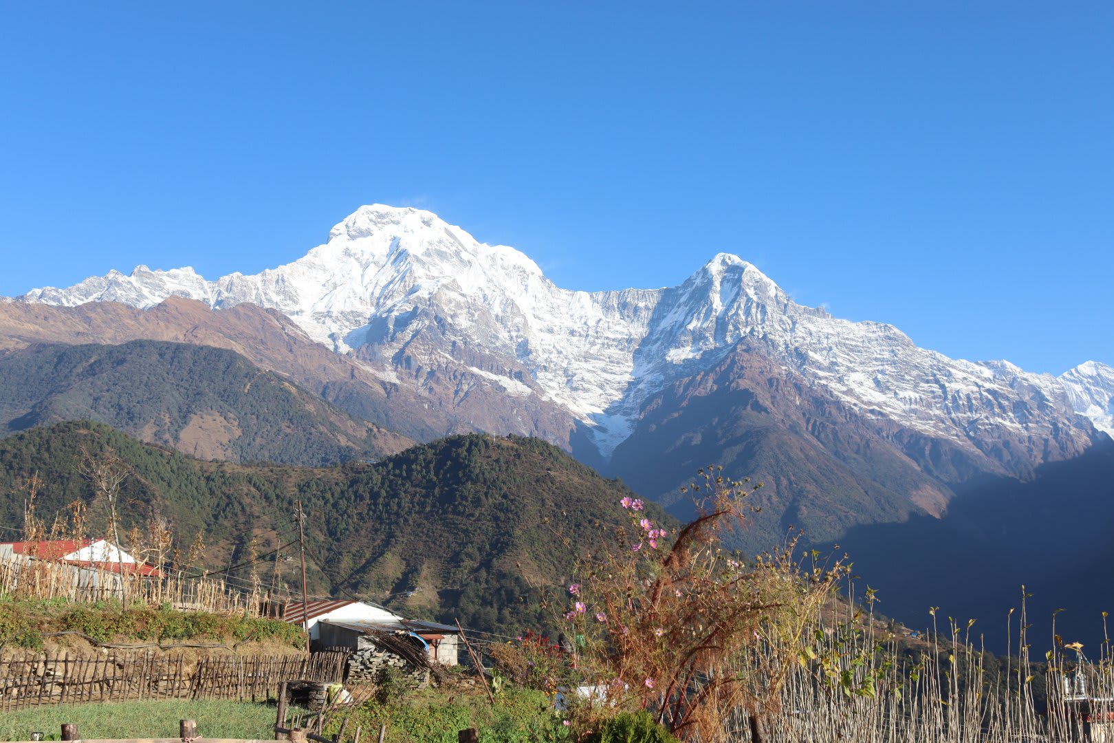 The major trek highlight for an early day is to have the sunrise at Poon Hill from where you will be treated with the magnificent panoramic view of the Annapurna range (8091 m), Dhaulagiri (8167 m), and Machhapuchhre (6993 m).
